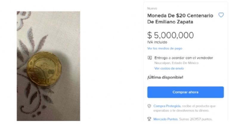 Estos últimos días del mes se han caracterizado por la espectacular gama de objetos que se venden en los mercados digitales relacionados a la numismática. Y si bien algunos sobresalen de entre los demás, recientemente ha sonado con fuerza esta moneda de 20 pesos misma por la que se pide la estratosférica cantidad de 5 millones de pesos.