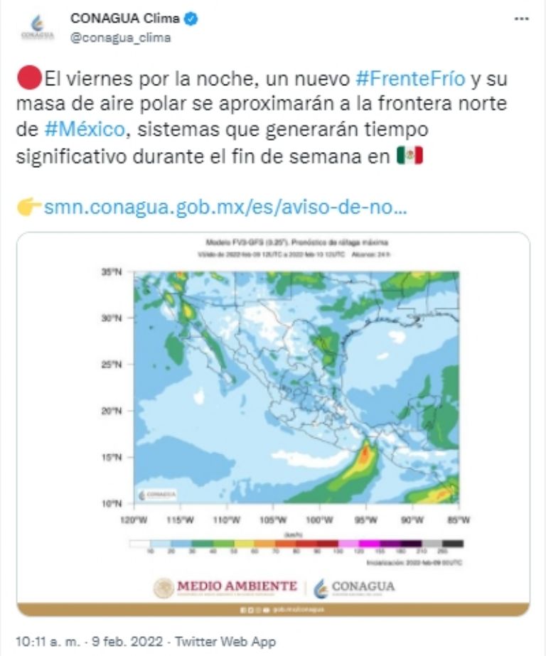 Dicho lo anterior, es preciso mencionar que, actualmente, el país se rige bajo el impacto del Frente Frío número 28, el cual entró durante los primeros días de este mes. No obstante, y pese a la fuerza con la que este se ha mostrado hasta ahora, es conveniente decir que la llegada del próximo Frente Frío está más pronto de lo esperado.