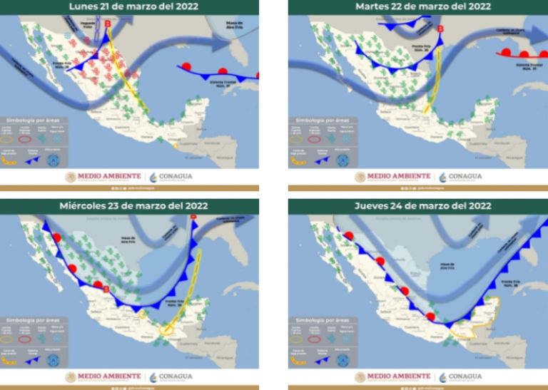 Esta situación provocará vientos muy fuertes e intensos con tolvaneras en regiones de la Mesa Central, así como chubascos con descargas eléctricas y vientos en espacios al interior de Tamaulipas, Coahuila y Nuevo León, además de lluvias disperas y la posible caída de aguanieve en algunos estados al norte del país durante los próximos días de marzo.