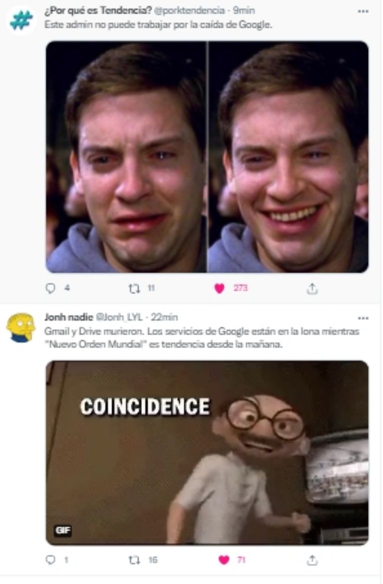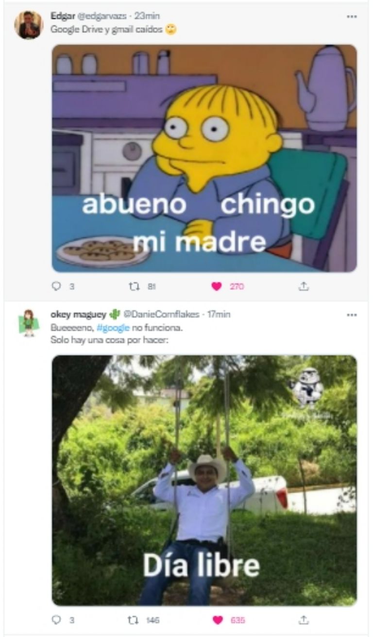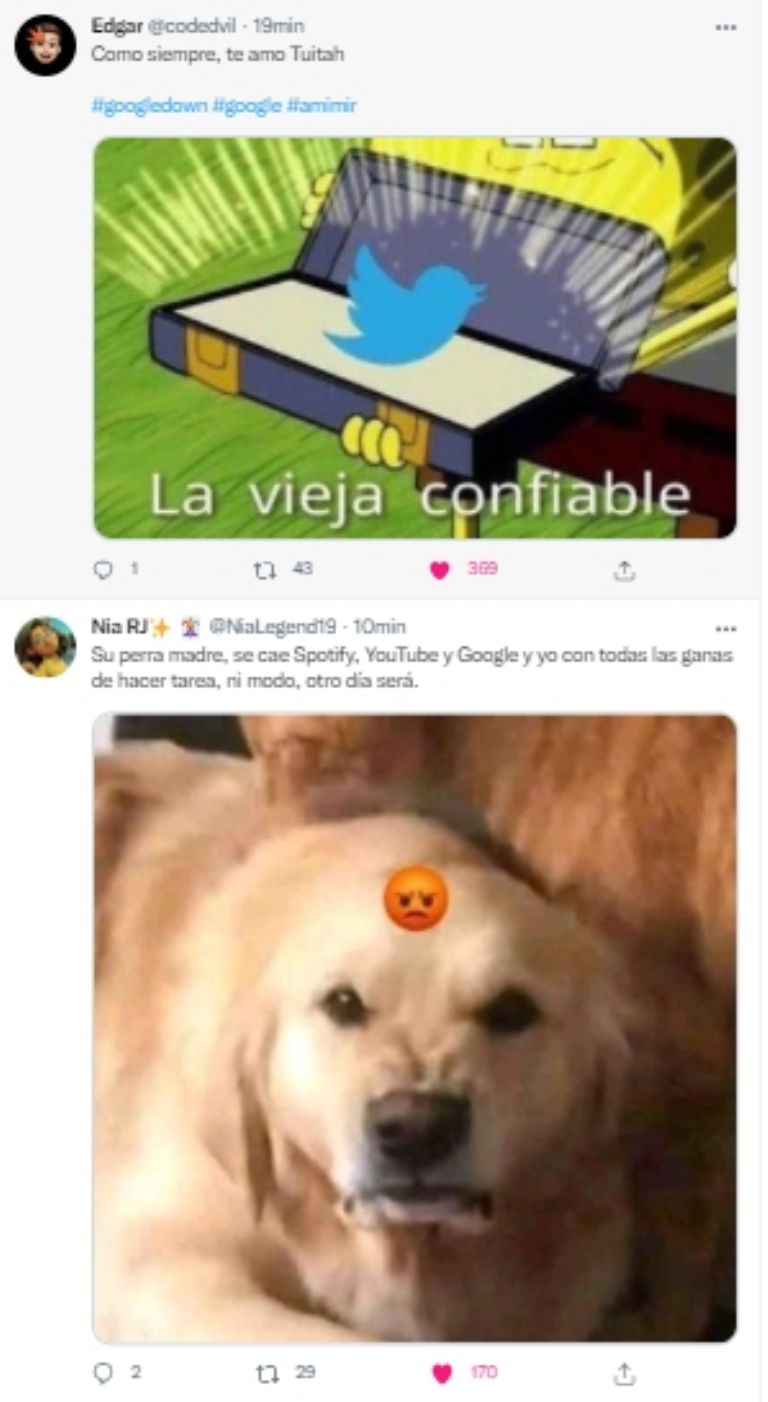 Dicha situación ocurrió durante la tarde de este martes 22 de marzo, cuando diversos usuarios acudieron a las principales redes sociales no asociadas con Google para brindar información respecto a este infortunio. Dentro de las más "beneficiadas" por esta situación aparece Twitter, quien se llenó con un sinfín de memes al respecto de lo ocurrido.