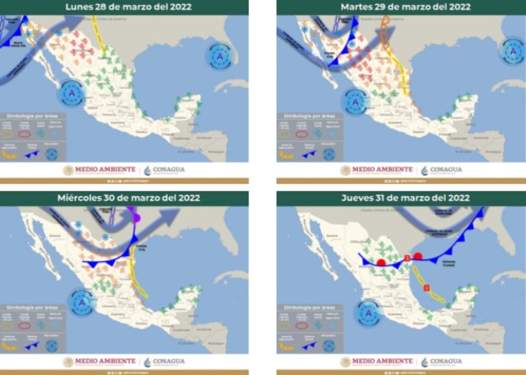 La República Mexicana presenciará la llegada de un nuevo Frente Frío, el cual ingresará y recorrerá el noroeste del patio nacional haciendo que el clima al interior del país traiga consigo lluvias, vientos e, incluso, temperaturas máximas en ciertos puntos espectíficos del 28 de marzo al 2 de abril del 2022.