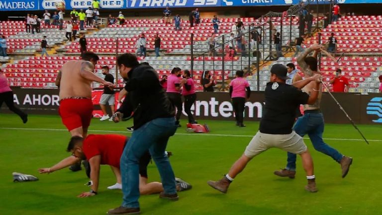 Aunque han pasado un par de horas, la eternidad se hizo densa en Querétaro. Los gritos no cesan. Los enfrentamientos siguen afuera del estadio, en una de las cabeceras. Adentro, el huracán de la violencia deja devastado un campo que debería generar alegrías.