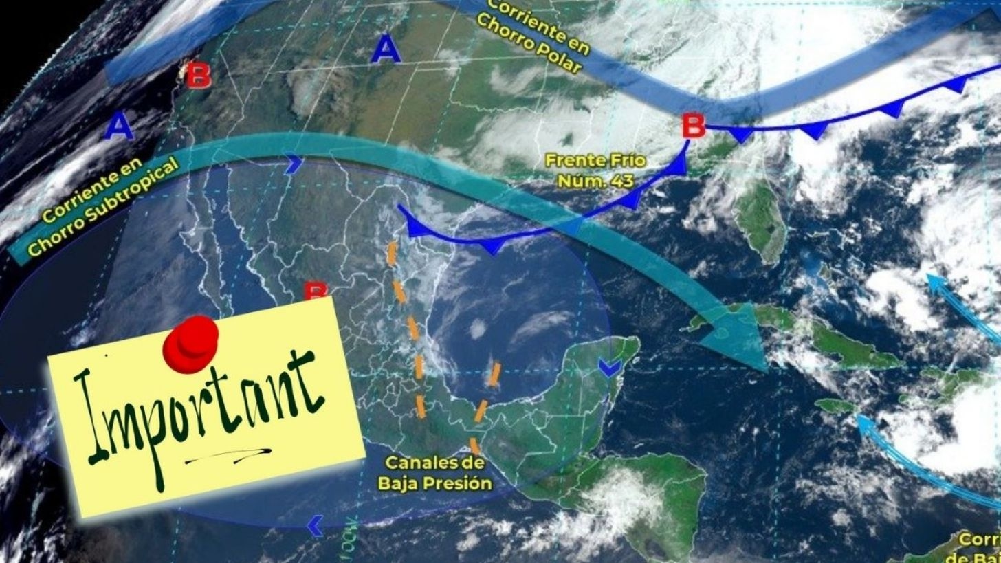 Además, el frente frío 43 coincidirá con un canal de baja presión en el sureste de la República y causará lluvias en los siguientes estados: