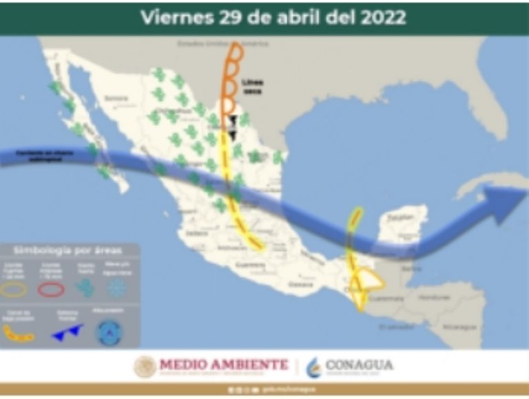 Esto se deberá a la línea seca sobre Coahuila y a un canal de baja presión sobre la Mesa Central y la Mesa del Norte, quienes en combinación con el ingreso de humedad del Océano Pacífico provocarán lluvias e intervalos de chubascos los cuales estarán acompañados de actividad eléctrica en lugares específicos del noreste, centro, oriente y sur de la República Mexicana.