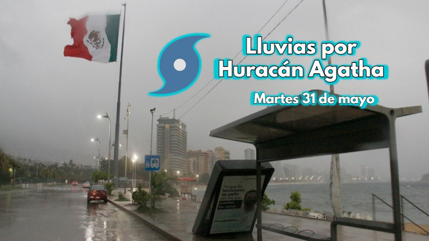 Después de que el Huracán Agatha entrara a costas de Oaxaca como categoría 2, el clima en México se verá afectado en la zona centro y sur, con estados afectados con lluvias por la presencia del fenómeno natural, el cual se desplazará hacia Veracruz este y, posteriormente, hacia la Península de Yucatán, aunque lo hará con menor fuerza, probablemente como deperesión tropical. Revisa dónde lloverá hoy martes 31 de mayo.