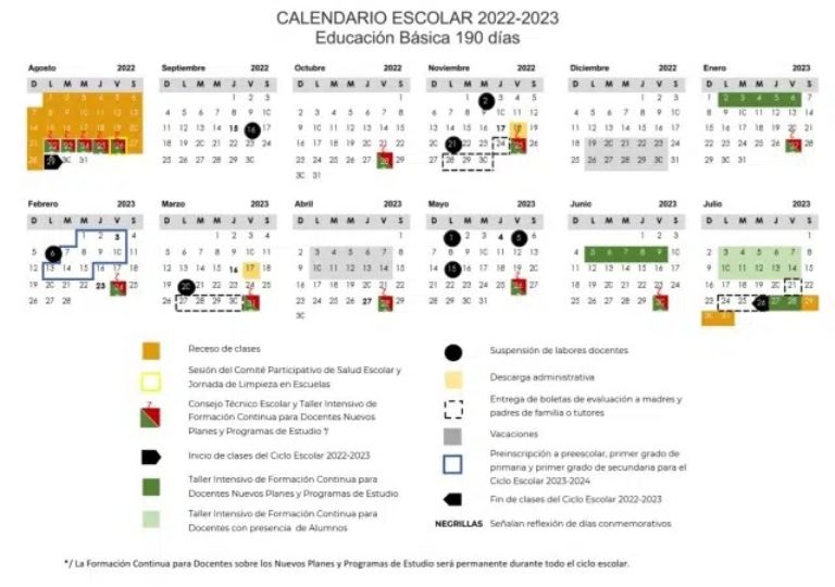 Con calendario que se mantiene vigente para el término del año escolar actual como modelo y referencia, se hizo esta planeación tentativa, la cual no luce descabellada y cumple con los días de clases que estipula la SEP. El inicio del próximo ciclo escolar estaría previsto para el lunes 29 de agosto de 2022 y el fin sería el 26 de julio de 2023.
