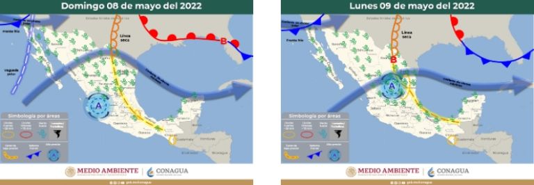 Lo anterior se debe con la línea seca y la interacción con una corriente de vientos máximos sobre el noroeste del país, mismos que ocasionarán fuertes rachas de viento y algunas lluvias aisladas e intervalos de chubascos que estarán acompañados de descargas eléctricas y granizo en puntos tales como Tamaulipas y Nuevo León, por citar algunos ejemplos.