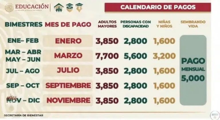 El dinero que aporta el Gobierno de México se brinda a través de depósitos bancarios de manera bimestral. En casos como el mes de abril y junio, cuand hay votaciones, por veda electoral, se pueden llegar a adelantar pagos o de retrasar con retroactivos. La Secretaría correspondiente aporta una cantidad diferente a cada uno de sus programas, siendo asignada la de 3 mil 850 a la Pensión Bienestar.