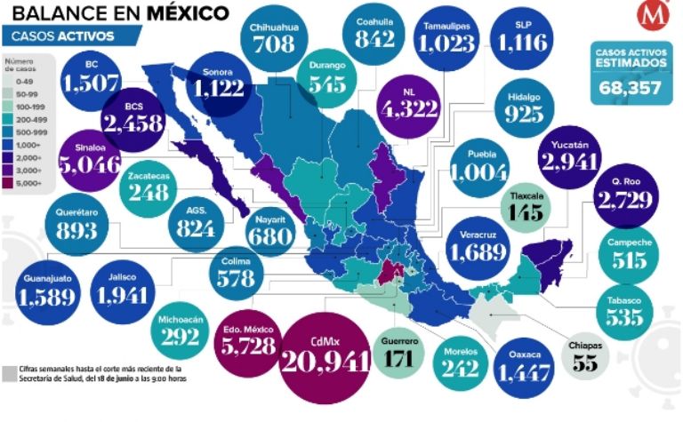De igual forma, es preciso indicar que el estado con mayor incidencia acumulada es Baja California Sur, el cual, hasta ahora, registra 277 infectados por cada cien mil habitantes. En total, se estima que el total de casos activos en la República Mexicana ascienden a 65 mil 34, mientras que la incidencia es de 50.0 por cada cien mil personas.