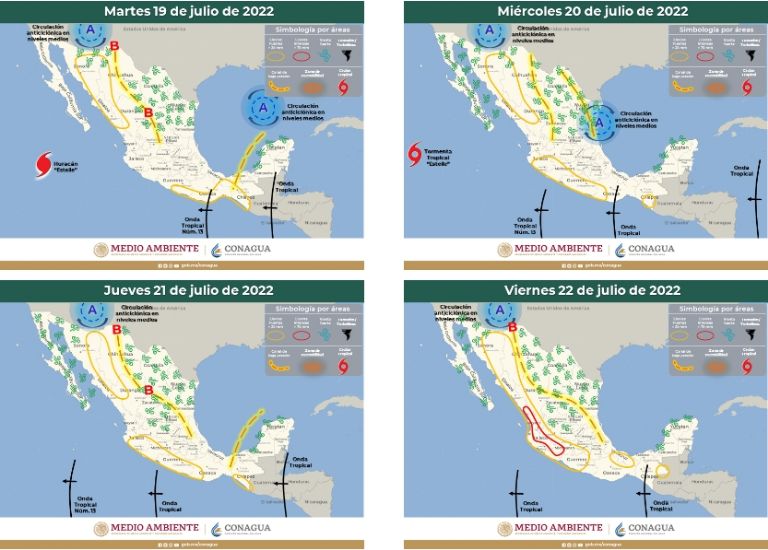 Sería el próximo miércoles 20 de julio cuando México presencie dos Ondas Tropicales al mismo tiempo siendo estas la 13 y la 14, las cuales recorrerán el centro, sur y occidente del territorio nacional. Dicha situación podría atraer chubascos y lluvias muy fuertes a su paso, generando una gran probabilidad de lluvias en regiones dentro de la Península de Yucatán.