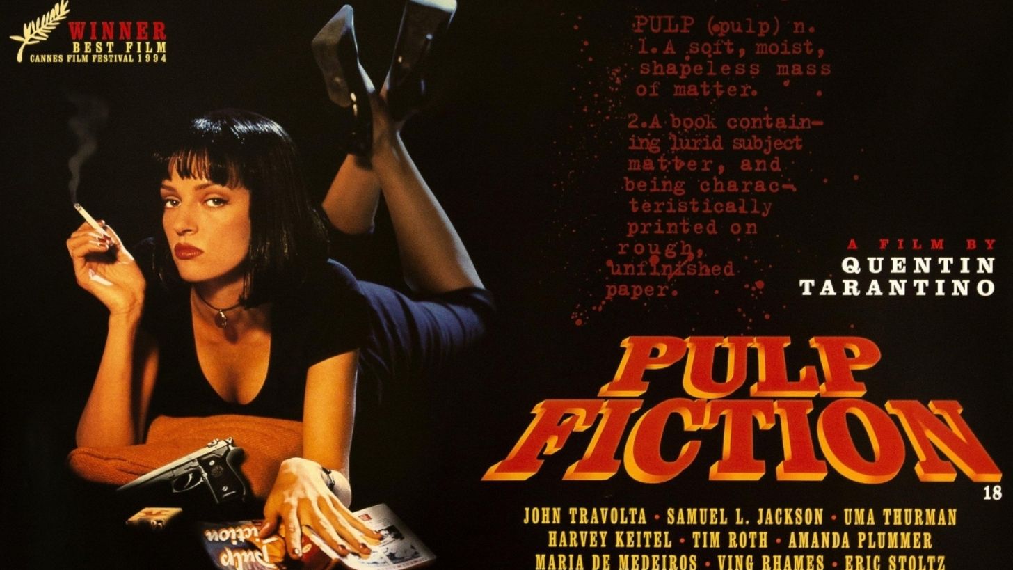 Conocida como Tiempos violentos, Pulp Fiction es una película de 1994? escrita y dirigida por Quentin Tarantino que, a partir de una narrativa no lineal, entrelaza varias historias cuyos protagonistas son miembros del crimen organizado de Los Ángeles.