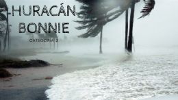 El reporte expedido por el SMN, refiere que el Huracán Bonnie de categoría 2 en la escala Saffir-Simpson, se localizará al sur de las costas de Baja California Sur, sus extensas bandas reforzarán el potencial de lluvias, además de oleaje elevado en el occidente del país. El sistema continuará con su desplazamiento hacia el oeste-noroeste, dejando de afectar costas mexicanas a partir del día jueves.