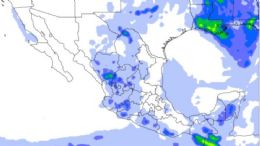 Lluvias intensas en Chiapas, muy fuertes en las zonas de Campeche, Chihuahua, Guerrero, Jalisco, CDMX; Coahuila, Colima, Durango, Estado de México, Guanajuato, Morelos, Nayarit, Oaxaca, Puebla y Zacatecas.