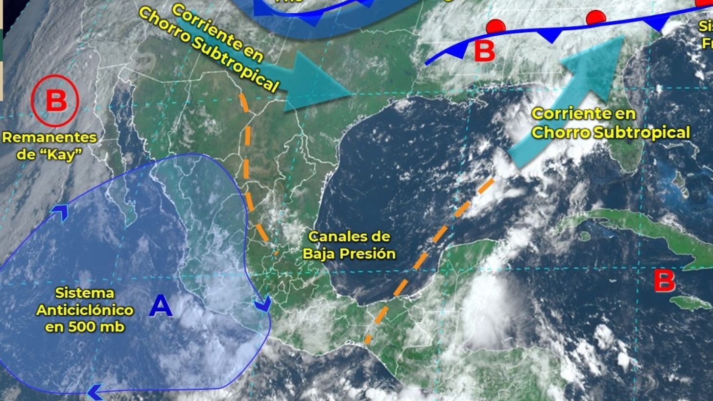 También se esperan chubascos en el oriente, lluvias muy fuertes en Puebla, el sur y sureste de México, incluida la Península de Yucatán, con precipitaciones torrenciales en Oaxaca, Chiapas y Tabasco debido a un canal de baja presión, que también afectará Nayarit, Jalisco, Colima y Michoacán.