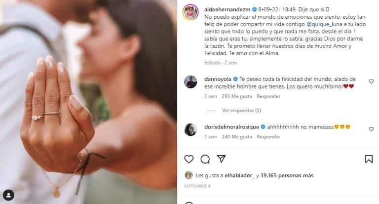 Aidee Hernández, quien se convirtió en la campeona de la segunda temporada, confirmó lo anterior el pasado 8 de septiembre del 2022 a través de una emotiva imagen desde sus redes sociales en las que agradece a Enrique por el increíble amor que le ha demostrado desde que se conocieron.