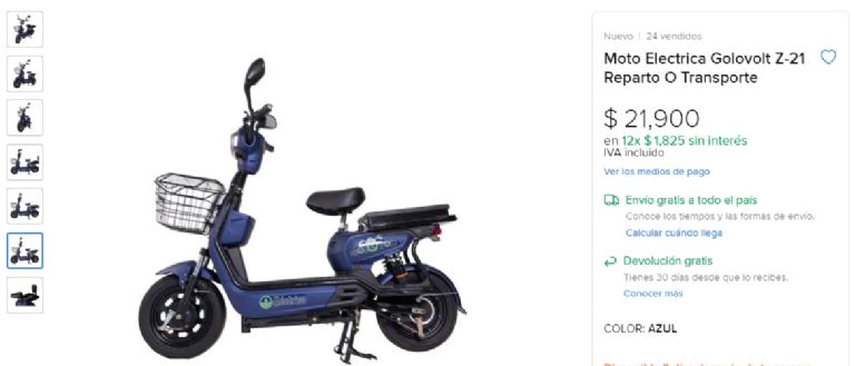 Si bien no puso el precio de la motocicleta, este medio investigó el modelo y precio del vehículo. Se trata de una motocicleta tipo scooter de la marca Golovolt, modelo Z2, la cual cuenta con canastilla en el frente y plataforma trasera para porta objetos o acompañante. El valor de la moto en Mercado Libre ronda los 22 mil pesos.