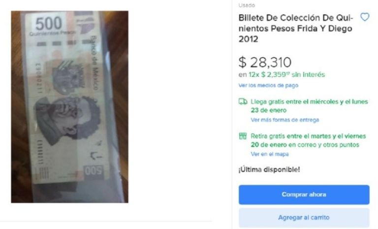 El propietario de este ejemplar menciona que es un billete de 500 pesos coleccionable dentro de la edición de Frida y Diego. En ese aspecto, es preciso mencionar que, más allá de otras características de índole básica, no existe algún punto relevante que verdaderamente indique que su precio de más de 28 mil pesos está realmente justificado.