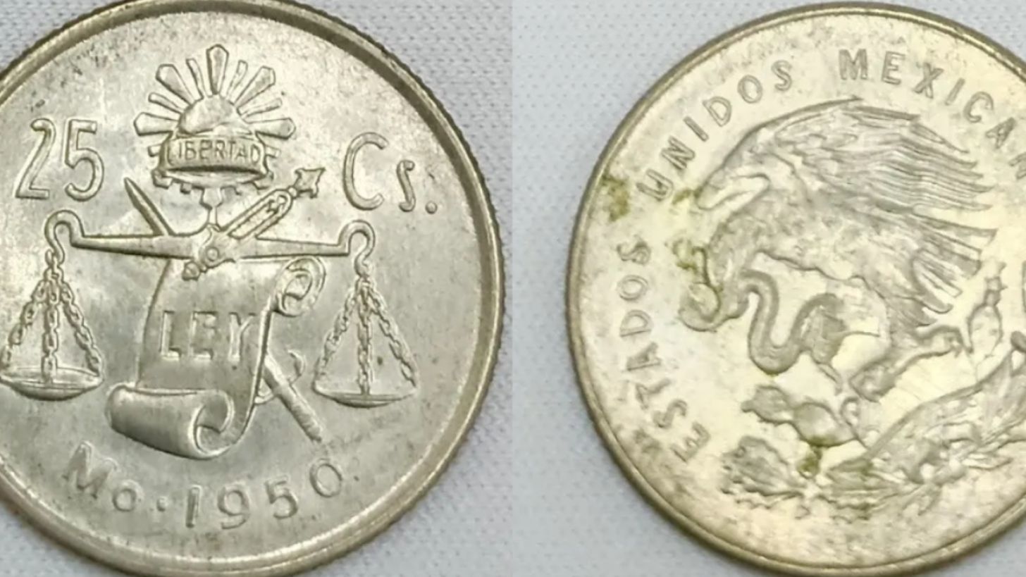 En este caso, la moneda ‘balancita’ que se ofrece en plataformas de compra-venta es una pequeña pieza de 21.5 milímetros de diámetro, con peso de 3.33 gramos y hecha de plata ley 0.300 entre 1950 y 1953, cuando la Casa de Moneda de México acuñó monedas de 25 centavos, una denominación poco usual en el país, con un contenido de plata de 30 por ciento.