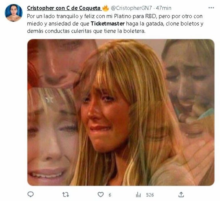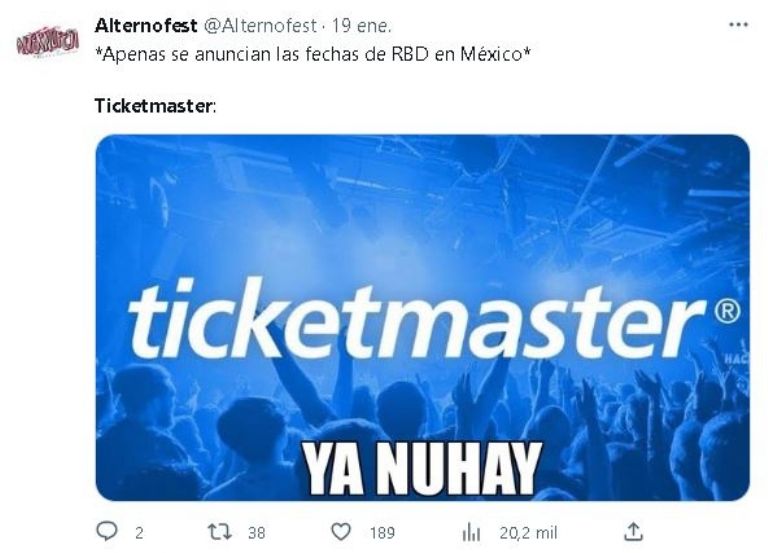 Debido a ello, la comunidad que sigue a RBD en redes sociales se manifestó con memes y reclamos hacia Ticketmaster quiénes no se han pronunciado sobre lo ocurrido este día.
