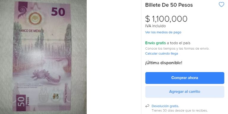 Se ha vuelto común que en diversas páginas especializadas el billete de 50 pesos sea uno de los más vendidos por la estética con la que cuenta en relación a los demás. Curiosamente, el que estás a punto de conocer tiene un precio que supera el millón de pesos por una característica principal que lo hace el favorito de varios usuarios en redes.