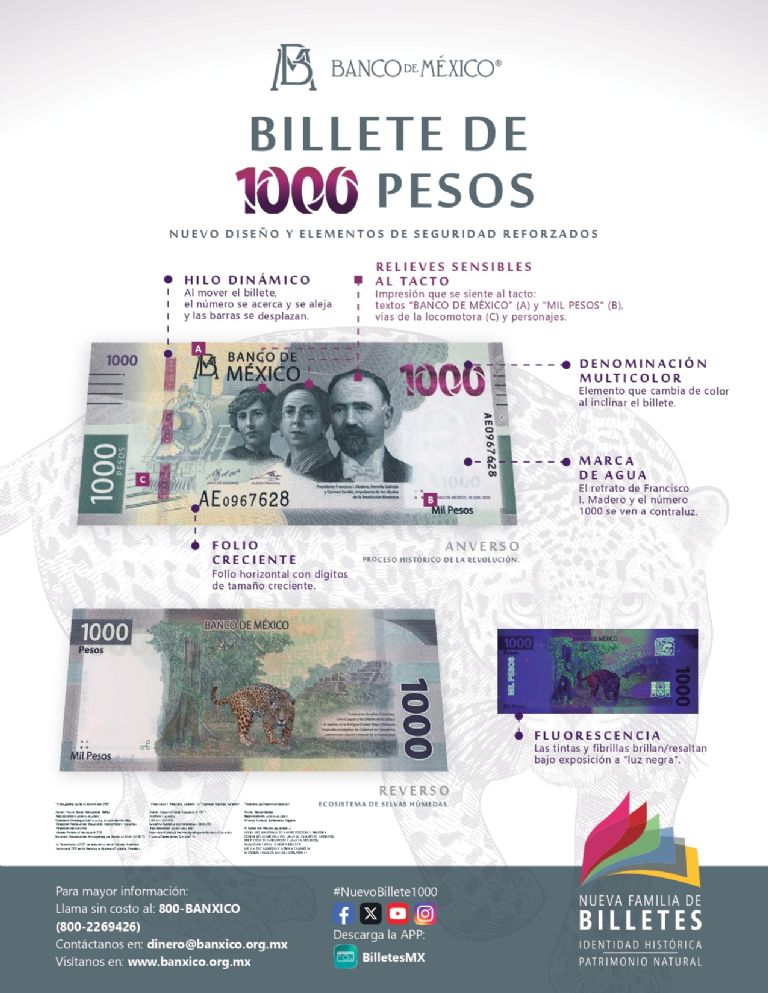 En circulación desde el 19 de noviembre de 2020, estas dos piezas pertenecientes a la Familia G, de 153 por 65 milímetros, hechas en papel de algodón y que en el anverso presentan el proceso histórico de la Revolución en México, con las figuras del presidente Francisco I. Madero, Hermila Galindo y Carmen Serdán acompañadas de una imagen de una locomotora. En el anverso muestra el ecosistema de selvas húmedas, con el jaguar y los árboles de la ceiba y el zapote en la Antigua Ciudad Maya y bosques tropicales protegidos de Calakmul en Campeche.