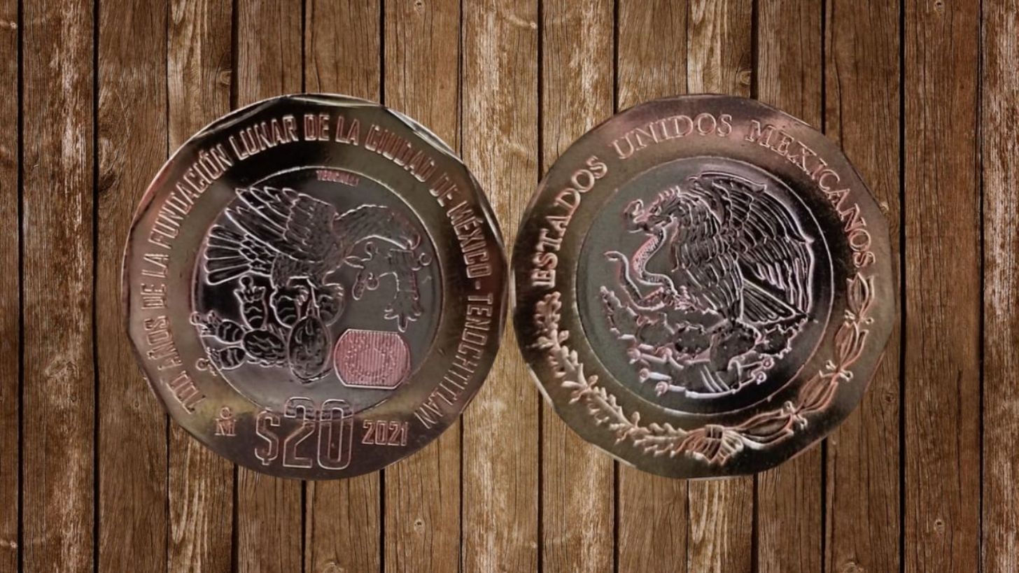 En ese sentido, existe un usuario en Mercado Libre que ofrece por 2.5 millones de pesos una moneda de 20 pesos liberada en 2021 con motivo de los 700 años de la Fundación Lunar de la Ciudad México – Tenochtitlán; en una de las caras es posible apreciar el Águila proveniente del Teocalli de la Guerra Sagrada, mientras que del otro lado hay un Escudo Nacional.
