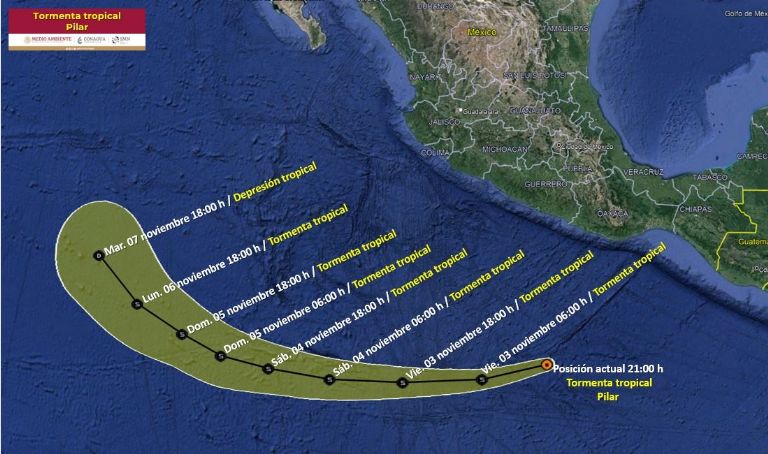 Otis dejó destrucción y muerte e Guerrero, pero tras su partida la temporada de huracanes no ha quedado atrás pues el Servicio Meteorológico Nacional (SMN) alertó respecto a la formación de al menos otras dos ciclones tropicales en el océano Pacífico hasta el próximo 30 de noviembre, uno de los cuales podría ser la tormenta tropical Pilar, del que te traemos su ruta en vivo y en qué estados provocará lluvias.
