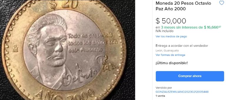 La moneda de 20 pesos que vale 50 mil pesos en internet