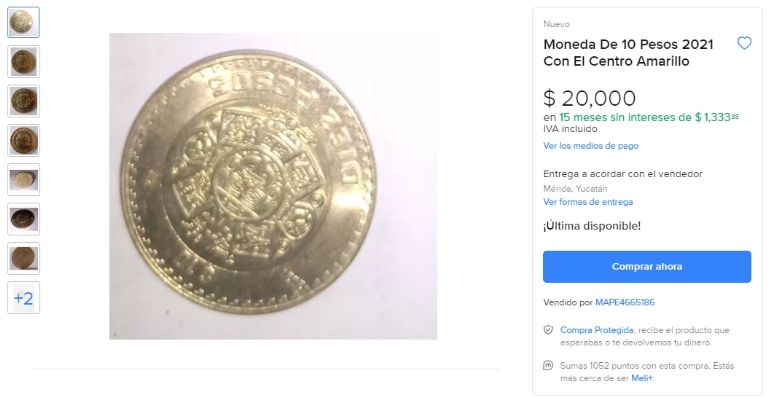 La moneda de 10 pesos en cuestión está siendo ofrecida por 20 mil pesos en Mercado Libre. ¿Qué hay detrás de ella? Pertenece a la familia C del Banco de México (Banxico); de ahí que figura como uno de los modelos más comunes en el territorio nacional. Asimismo, fue puesta en circulación el 9 de octubre de 1997; no obstante, esta es de 2021.