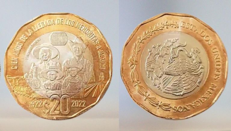 Una de las principales características de estas dos monedas de 20 pesos por la que piden 99 mil pesos a través de la plataforma de Mercado Libre en Internet, es que se trata de una pieza en forma dodecagonal y en honor a los Menonitas, la cual lleva una familia menonita.