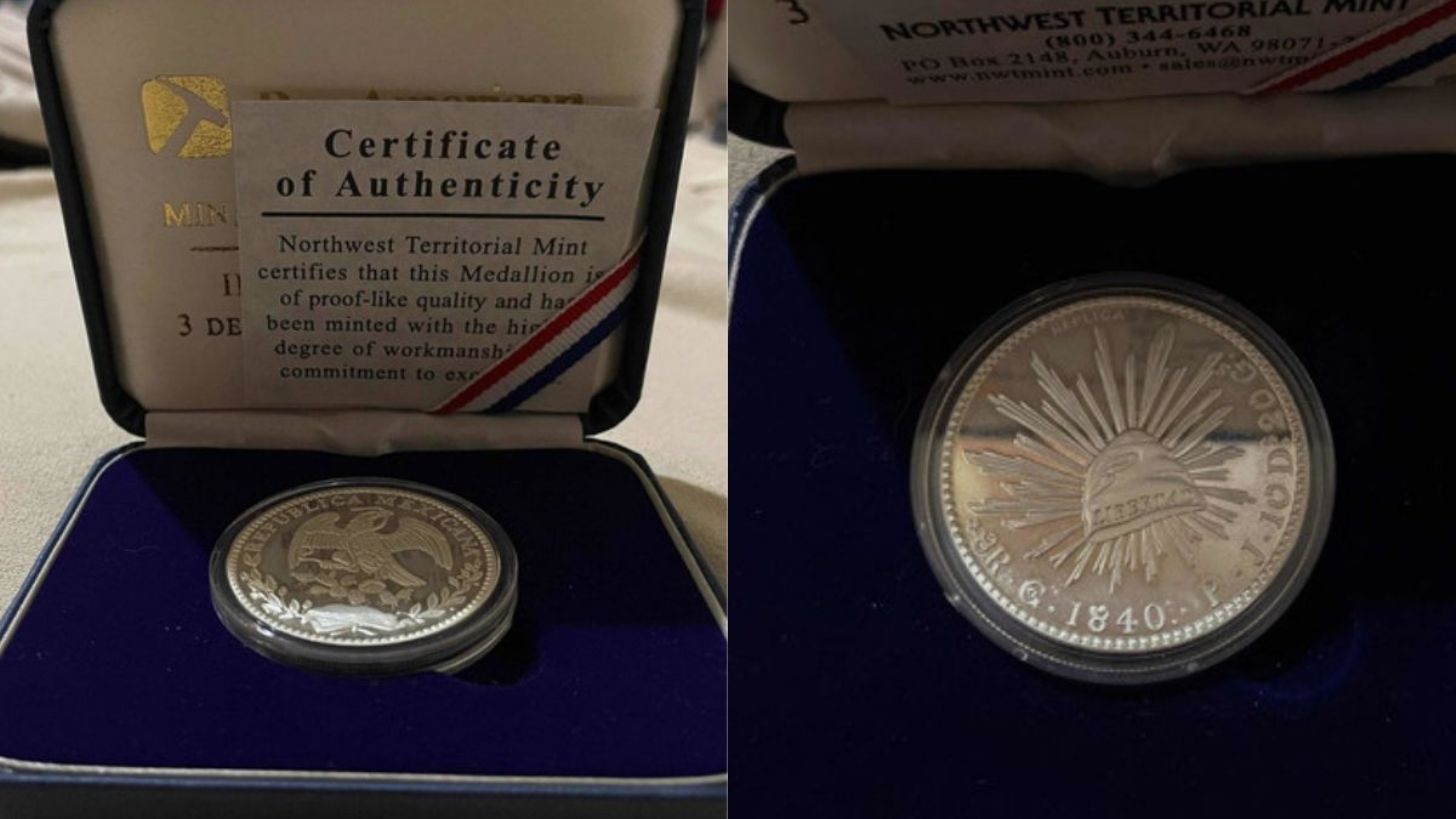 En ese sentido, un usuario en Mercado Libre ofrece una moneda mexicana de plata pura ley 0.999 por casi 4 mil pesos, en una de las caras aparece una edición antigua del Escudo Nacional, mientras que en la otra es posible apreciar un símbolo con la leyenda ‘Libertad’ y la fecha de acuñación que fue en 1840.