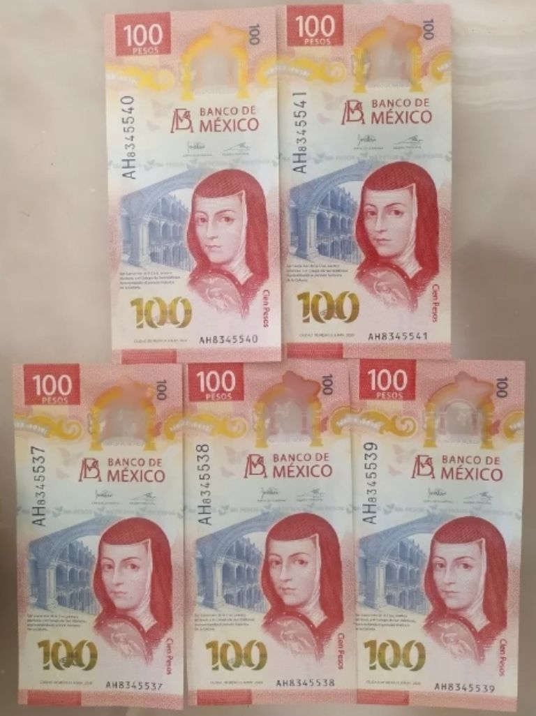La colección de billetes de 100 pesos en cuestión ostenta 5 piezas de idénticas características: todos pertenecen a la familia G del Banco de México (Banxico); por lo que datan de hace algunos años. En realidad, fueron puestos en circulación el 12 de noviembre de 2020. ¿Lo tenías en cuenta? Juntos valen 70 mil pesos.