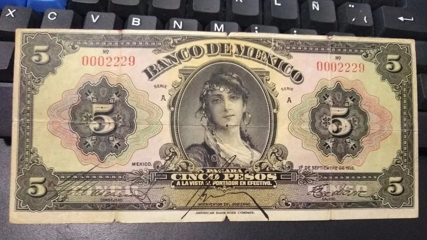 El primer billete de 5 pesos se lanzó entre 1937 y 1970, pero que actualmente se vende hasta en 40 mil pesos y que tiene la imagen de una gitana que causó un escándalo en su tiempo al creerse que se trataba, ni más ni menos, que de la amante del mismísimo director del Banco de México.
