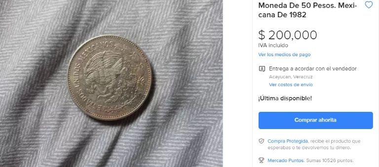 Otra de las características de su venta es que la misma está protegida aceptando cargos con diversas tarjetas pese a que el dueño radica en Veracruz. No obstante, lo recomendable ante este tipo de casos es asistir con un experto en la numismática para que sea él quien te diga si es conveniente hacer el gasto por un ejemplar como este.