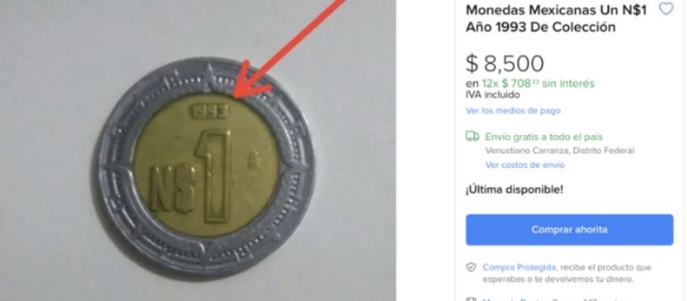 Son muchas y muy variadas las monedas y los billetes de ascendencia mexicana que se venden en lugares como Mercado Libre, Amazon y eBay, los cuales cuentan con precios más elevados de lo normal. Y en función a esto, luce interesante conocer más sobre esta moneda de 1 peso, la cual cuenta con un punto particular por la cual se ofrece más de 8,000 pesos por ella.