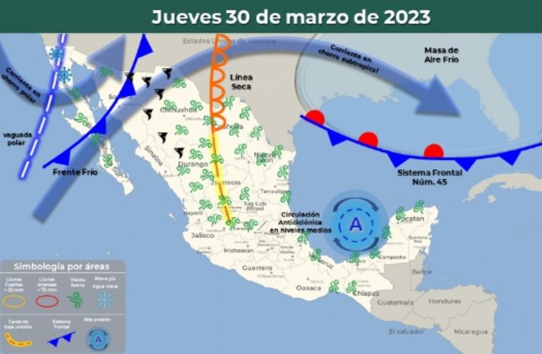 La fuente detalla que este nuevo fenómeno de la naturaleza tendrá la capacidad de extenderse sobre el noroeste del territorio nacional, esto gracias a su interacción con una vaguada polar y con las corrientes en chorro polar, así como una línea seca que se presentará en el norte de México generando, así, fuertes rachas de viento junto a lluvias y chubascos.