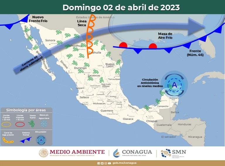 Si bien es cierto que la Primavera comenzó el pasado 20 de marzo, los frentes fríos continuarán e irán acompañados de varias olas de calor, para luego dejar de ser frecuentes y dar paso a la temporada de huracanes. Pero antes de eso, el frente frío 47 entrará el próximo domingo, afectando a los estados del noroeste con vientos fuertes en Baja California, Baja California Sur, Durango, Chihuahua, Sonora y Sinaloa.