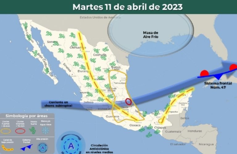 De acuerdo con información del Gobierno de México a través del Servicio Meteorológico Nacional, son 16 los estados de la República Mexicana que sufrirán de lluvias fuertes, muy fuertes y puntuales durante este martes 11 de abril. Además, habrá otros que tendrán chubascos y, finalmente, también habrá lugares con bajas temperaturas, por lo que tienes que tomar precauciones.