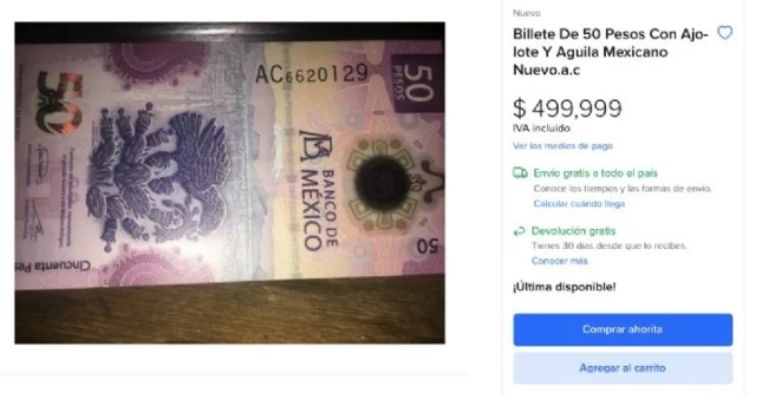 Cabe mencionar que, pese a que el billete cuenta con una estética muy llamativa, el hecho de que los precios no estén regulados en estas plataformas digitales hace que algunos coleccionistas duden de su veracidad. Ante ello, se recomienda reunirse con un experto en monedas y billetes para que sea él quien te brinde más detalles respecto a este ejemplar valuado en 500,000 pesos.