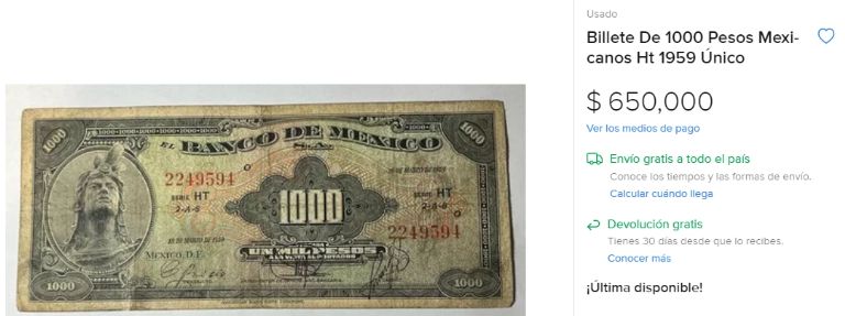 La fuente también añade que aquellos billetes que forman parte de 1949 a 1961 son los que más se buscan en el terreno digital, una característica que este ejemplar tiene. Además, el mismo cuenta con un error de serie por el cual algunas personas lo venden en distintos precios en plataformas como Mercado Libre, especializadas en este tipo de productos.