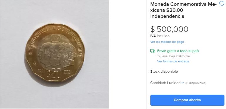 Es por estas características, y por el hecho de hacer alusión a una de las fechas más importantes en la historia del país, que esta moneda conmemorativa de 20 pesos se valúa en 500,000 en redes sociales. Dicho esto, el dueño proveniente de la ciudad de Tijuana en Baja California asegura que el pago ya cuenta con el IVA incluído.