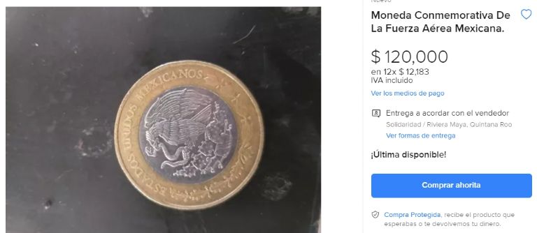 Es preciso mencionar que la publicación no cuenta con más detalles al respecto y que la única información establece que el pago de 120 mil pesos se puede realizar en 12 mensualidades de 12 mil 183 pesos. No obstante, se sabe que la moneda cuenta con un ala representativa del año 1915, la cual fue utilizada por la aviación militar nacional.