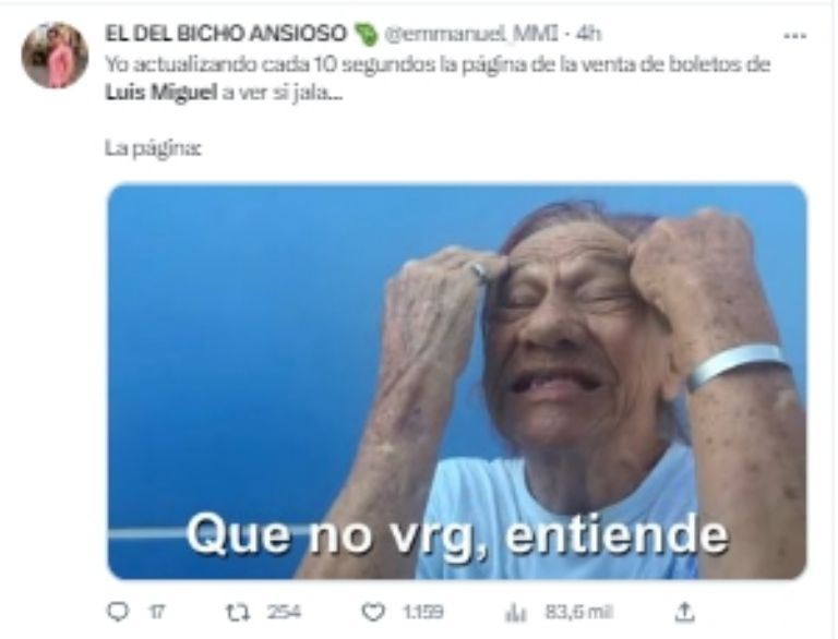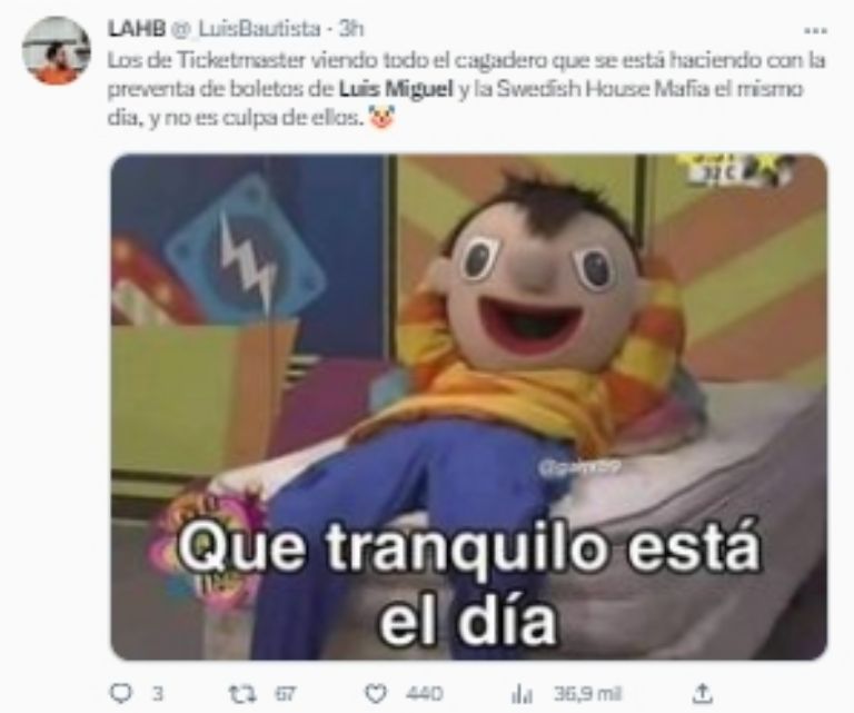 Y, como era de esperarse, los memes hicieron que el trago amargo de esta situación fuera un poco menos complicado. Hasta el momento se desconoce si Luis Miguel abrirá nuevas funciones al interior de México, un hecho que no se descarta del todo considerando la estupenda demanda que ha tenido en estos primeros días de preventa.