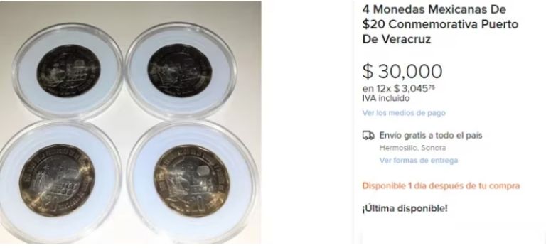 Se trata de una colección de monedas de 20 pesos que incluyen cuatro ejemplares y que corresponden a la celebración del Puerto de Veracruz, esto de acuerdo con la descripción del usuario que tiene a la venta. Ante ello, al propietario de las mismas exige un monto de 30,000 pesos dado que son productos de origen completamente mexicano.