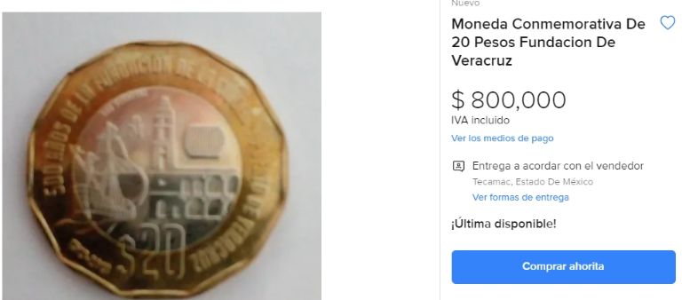 Si formas parte de uno de los puertos más importantes de este país, tal noticia te generará mucha expectación. Se trata, nada más y nada menos, que de una moneda de 20 pesos que hace alusión a la conmemoración de los 20 años de la fundación de Veracruz, hecho por el cual se vende a precios estratosféricos en las redes sociales.