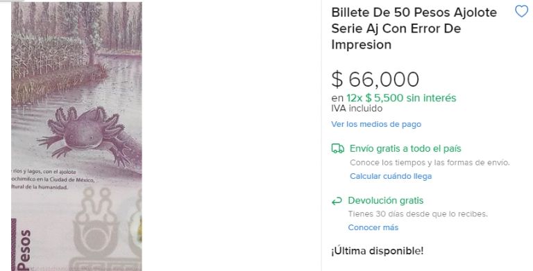 Si eres un amante de la numismática, entonces seguramente sabes que en redes sociales existen un sinfín de artículos relacionados a este mercado que se suelen vender a precios estratosféricos. Uno de ellos, curiosamente, es este billete de 50 pesos, el cual cuenta con un importante error de impresión por el cual exigen hasta 66 mil pesos por él.