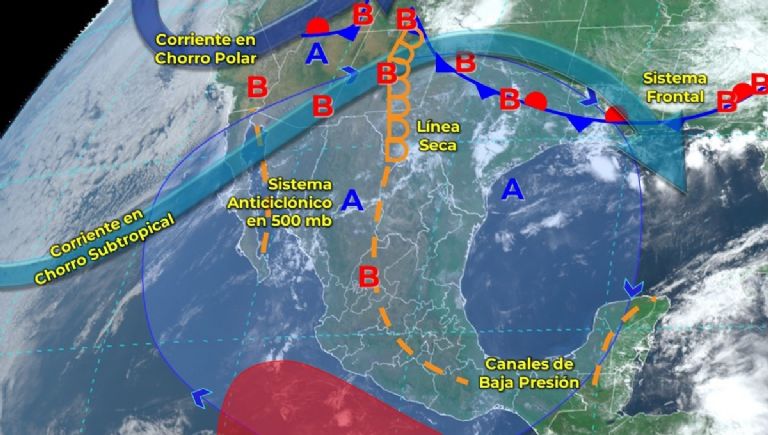Se esperan chubascos vespertinos y lluvias fuertes con descargas eléctricas, rachas de viento y posible caída de granizo sobre entidades del norte, occidente, centro y sur del país, con precipitaciones puntuales fuertes en Guerrero y muy fuertes a intensas en Oaxaca, Chiapas y Tabasco.