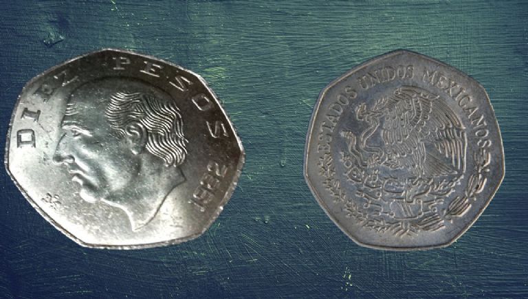 Además, cuenta con un diámetro de 3.05 centímetros, con un material de aleación de cobre y níquel, mientras que su canto es liso. En el anverso se puede ver el Escudo Nacional con el águila estilizada de perfil, y al lado izquierdo se ve la leyenda que dice “Estados Unidos Mexicanos”.