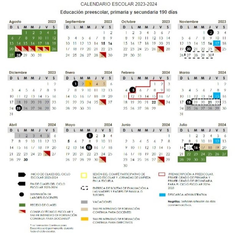 De acuerdo con la organización gubernamental, las sesiones del ciclo escolar 2023/2024 acabarían el martes 16 de julio de 2024. Sí, todavía falta cerca de un año para ese momento. No te olvides que el calendario oficial de la SEP consta de 190 días de clases y está destinado a los jóvenes de preescolar, primaria y secundaria.