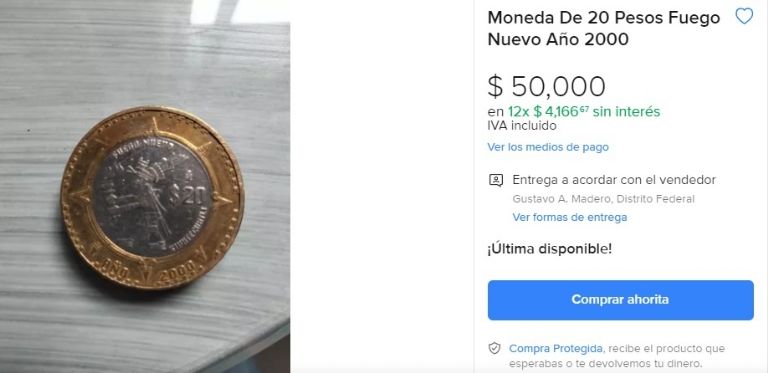 La moneda del Señor del Fuego se vende en Mercado Libre, sitio experto en la compra y venta de artículos relacionados a la numismática.. El dueño de la misma reside en la alcaldía Gustavo A. Madero y, en beneplácito de los interesados, pone a disposición un método de pago que consiste en 12 mensualidades de cuatro mil 166 pesos. ¿La quieres en tu vitrina?